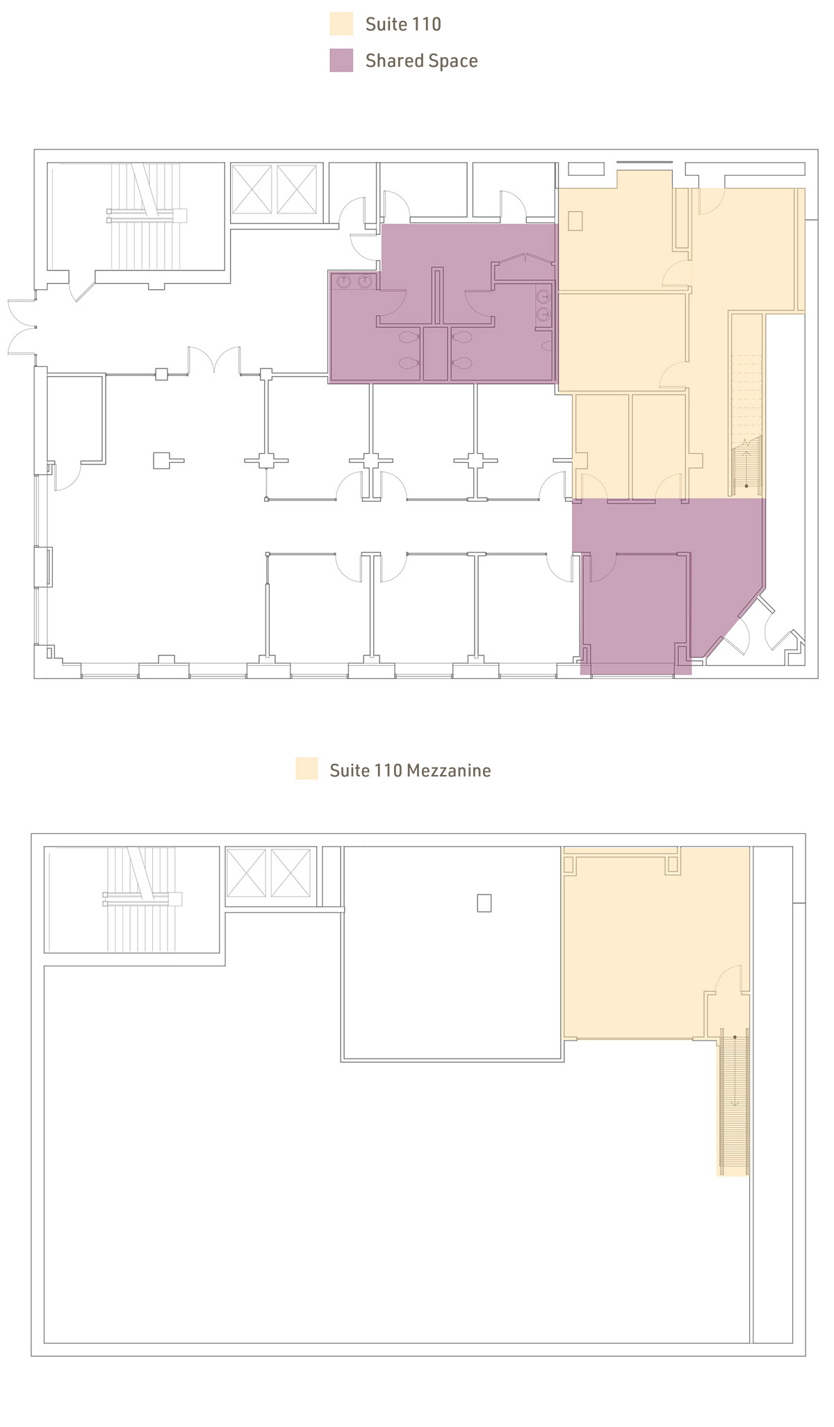 - Suite incudes a mezzanine, access to a shared kitchenette, and onsite property management