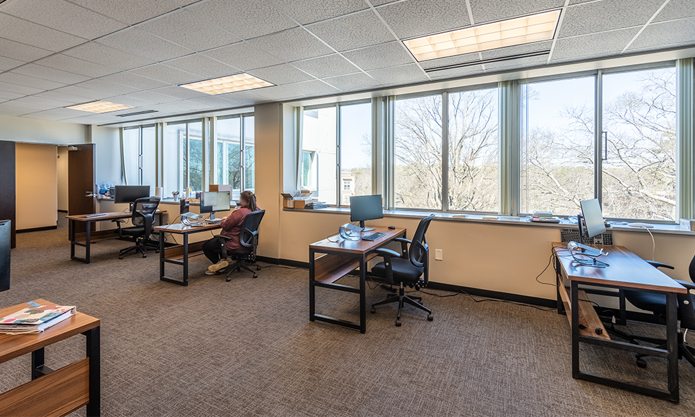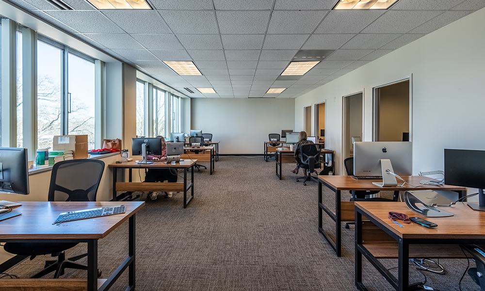 - Three private offices/meeting rooms and private bathroom access